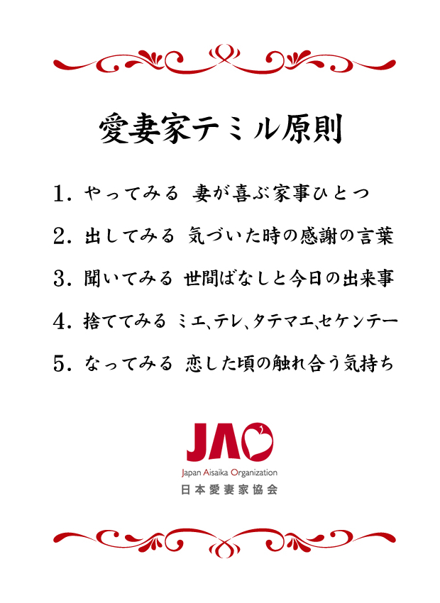 という甘い理想のもと、日本独自の伝統文化かもしれない愛妻家というライフスタイルを世界に広めていこうという文化活動です。